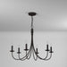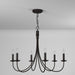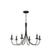 The Wrought Iron 6 light chandelier features hand forged and carefully shaped arms in black finish