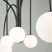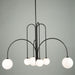 A perfect compliment to any environment is the airy and clean looking "Comet" collection. This series can definitely be a focal point but not distracting. This collection features thin matte black arms and spherical white glassware. This glass is illuminated by bright G9 LED bulbs. 6 light chandelier shown but also has a stunning double type matching pendant.