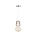 The Cyra single pendant collection is a captivating fusion of various glass shapes and designs, creating a visually dynamic and unique lighting ensemble. Each pendant in this collection is meticulously crafted to showcase a blend of artistic glasswork, adding a touch of sophistication to any space. Enhanced by LED illumination, the entire collection radiates a harmonious and ambient glow, transforming the lighting experience into a seamless marriage of form and function. Shown with white and smoke glassware on a chrome frame.