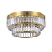 The Stella Collection double tier flushmount features dazzling crystals which are illuminated by bright LED. The frame is finished in a rich brushed brass. Due to its LED light source it is energy efficient. This model is dimmable and back with a 5 year warranty on the LED.