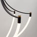 The Cascata Collection, designed by Kevin Kraemer, features a sleek and minimalist design, combining precision craftsmanship with modern aesthetics. The frame is black with brass accents. The bright LED illuminated silicone drapes throughout giving this collection an illusion of weightlessness. This eye-catching collection is a perfect complement to any surrounding. The model shown is a height adjustable circular chandelier.