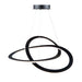 The "Wave Collection" is named after its curvy organic design. A perfect addition to any modern to transitional setting. The chandelier is finished in a semi gloss black and is suspended by aircraft type cables. It is illuminated by bright energy saving LED technology. This large chandelier is available in a smaller version with a semi flush to match.