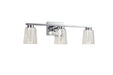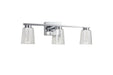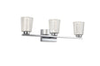 The Dalton Collection features a distinctive design with a clear outer glass surrounding a interior seeded cylinder glass, creating a unique and modern aesthetic. The LED lighting is skillfully integrated to accentuate the seeded glass, providing a visually striking and exceptional effect. Show in with a chrome frame (also available in black). Additionally, these models have a built-in LED switch, allowing users to effortlessly adjust the color temperature from 3000, 4000, and 5000 kelvin for a customizable lighting experience. This collection seamlessly combines functionality with an eye-catching design, making it an elegant choice for any bathroom space. 3 light wall sconce shown. (Also available in a single and 4 light versions.)