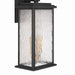 The "Estate" Collection outdoor wall sconce radiates classic allure, with its black metal frame offering a striking contrast to the mesmerizing water glass panels. Encased within, vintage brass candle covers and intricate metalwork glow warmly, evoking a sense of nostalgic charm. Perfect for enhancing any outdoor space, this sconce blends classic sophistication with modern durability.