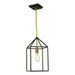The Twilight collection by Steven Sabados of S&C, features matte black cages with harvest brass interior fixture clusters. Single pendant shown