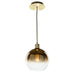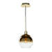 From designer Steven Sabados [S&C], the "Morning Mist Collection" is an instant classic. The glassware is so unique in that the bottom is clear but as you reach the top part of the sphere it is plated with a gold semi transparent mirror. The frame is finished in a matte brass. The black wires are all height adjustable. This series has multiple configurations. Model shown is the single pendant.