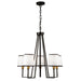 From the S&C design firm, with strict direction from Steven Sabados, the Coco Collection chandelier features a transitional frame which has flat type arms. The frame is finished in a rich matte black, and has harvest brass accents. The hardback white linen shades are complimented with upper and lower black trims to finish off the design. Make a statement in your home.