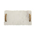 Trays are one of the most versatile decorative accents in your space. Made from white marble, this one features rich veining that makes each unique, as well as a raw honed edge that adds to its natural beauty. Textured cast metal handles finished in antique brass make it fully functional for serving. Marble will vary.