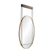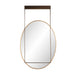 The duality between angular framework and a softly rounded silhouette gives the Kimber Mirror a cohesive modern style. The two forms play together in an elegant balance, the rounded iron frame layered inside of the outer cage so the plain mirror itself seems suspended within the connected pair. Adding to the dichotomy is the contrasting bronze and antique brass finishes of their metal construction. Keyhole hanging hardware nests seamlessly into the design on the frame.