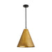 This classic conical-shaped pendant is a modern mainstay with timeless appeal. Its sleek and slender foundation is composed of iron, with an antique brass finish on the shade and a bronze finish on the pipe for subtle contrast. A forged iron ring detail ties the two finishes together and creates overall cohesiveness. Perfect for spotlighting your favorite setting. Finish will vary. Additional pipe available (PIPE-462). Damp rated, though limited outdoor conditions may affect finish.