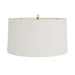 The ornament-inspired shape of this glass lamp delivers a classic appeal to a space, while a smoke luster ombre finish and antique brass detail imparts a more contemporary vibe. Irridescent hues travel down the façade, blending into one another before eventually fading into clear glass. When illuminated, a colorful palette of moody tones become more prominent. Topped with an off-white linen drum shade with off-white cotton lining and an acrylic sphere with brass finial. Finish will vary.