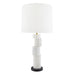 The Paladia lamp takes the notion of the classic Greek column and cleverly deconstructs it in an offset stack of ribbed white marble discs. The nuanced table lamp is accented with a matching marble cylinder finial and sits on a round, blackened iron plinth. An off-white linen drum shade with off-white cotton lining finishes the conceptual piece. Marble will vary.