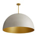 Equal parts classic and dramatic this over-scaled light fixture delivers form & function in grand scale. The streamlined dome design features an outer matte eggshell surface while the interior of the dome features a brilliant gold metallic semi-matte finish. Though a stand-out fixture on its own it makes an even bigger impact when grouped with the complementary shapes and tones in the Pascal Patton and Ponce Pendant Collections. Additional pipe available (PIPE-101).