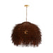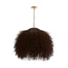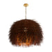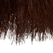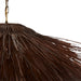 The Jana presents a playful profile that expresses form and function. Its shade is composed of dark brown wicker fringe creating a beautifully chaotic, yet intentional shape. This pendant takes inspiration from traditional thatched roofs with a heavily textured look. The super oversized shade is suspended from an antique brass iron frame and chain. The variations of tones and textures are highlighted when illuminated. Finish will vary. Additional chain available (CHN-250). Damp-rated, although limited covered outdoor areas may affect finish.