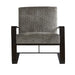 Architectural references from shape to material lend an industrial aesthetic to this contemporary armchair. The natural iron frame is seamless moving the eye along each curve and corner. The floating seat is covered in a textured lichen velvet fabric with a soft ripple pattern.