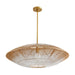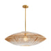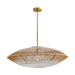 Exhibiting a mid-century silhouette, the Hadya is defined by both modern and traditional elements. Artisans delicately bend thin spines of coco midrib in natural to white ombré finish, over a saucer-shaped antique brass steel frame with an abaca-wrapped edge detail. A shallow profile makes it great for small spaces. Finish will vary. Additional pipe available (PIPE-101). Damp rated, though limited outdoor conditions may affect finish.