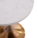 Refined simplicity describes the design of the Irving. A solid marble top sits on a sleek and slender frame, which seamlessly flows into a trumpeted base and is accented with circular details. The vintage brass finish gives a more distinguished look to the base delivering a complementary contrast to the white marble top. Marble will vary.