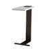 The classic c-shape of the McClain is forged in industrial style. A minimalist profile of a white marble slab clipped into a bronze, etched iron frame. Large chattered detailing on the iron frame delivers plenty of visual and tactile texture. Size scaled to overhang the arm of a sofa or chair. Marble will vary.