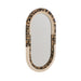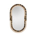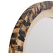 The duality of ivory and natural colored faux horn creates an interplay in the design of this exquisite mirror. Each is layered within with the other, a symbiotic balance of hues, textures and shapes. The natural uniqueness in these characteristics shines through with every tile, each laid in a mosaic-style pattern that trims the central oval mirror. Security cleat hanging hardware allows this mirror to hang vertically or horizontally. Finish will vary.