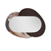 Sweeping, rounded fins surround the dark antiqued brass mirror, both dramatic and elegant. The frame is etched with a radial clad pattern and an antiqued mirror that balances beautifully in the oval shape. Security cleat hanging hardware to hang both vertically and horizontally. Finish will vary.