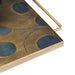 Serve hors d`oeuvres at a soir?e or store prized pieces on a vanity with the Emilia. Black and mercury flora cell-like spots span across the antiqued glass surface creating a vivid visual. Antique brass iron handles and four round feet make this piece functional. Finish may vary.