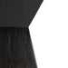 Sculpturally dynamic the Drew`s figure is made with refined and rustic materials. A round top flows into an angular hourglass base offering a unique contrast to the geometric relation of its profound profile. Crafted from oak in a bold umber finish this dining table features a pronounced antique brass clad that squares off the base and a matching circlet inlay that accents its top. A striking piece to command contemporary settings.