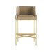 Take a seat in sophisticated style with the Dalia. Covered in a soft-to-the-touch morel leather this stool features a squared back profile with slightly curved arms that gracefully flow into an antique brass linear base. Its shortened arm height allows it to easily slide under counters. Its versatile aesthetic complements both traditional and modern decor making it an optimal seating option for various settings. Finish and leather may vary.