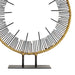 Beauty is said to be in the eye of the beholder, but what about the beholder of an eye? Our natural iron circular sculpture reminds us of the iris of an eye, with its welded brass exterior ring and interior lined with spigot details. A true artistic representation, the Harper Sculpture makes for a unique accent piece on a tabletop or shelf. Pair with its smaller version for a dramatic coupling. Finish will vary.