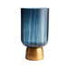 The Ingram is pure elegance, as a hurricane or vase. Optic glass finished in navy blue meets an antique brass base, creating a simple yet striking contrast. Its straightforward silhouette is ideal for a 3-inch pillar candleâÂÂlet the flicker of a flame accentuate its form. Watertight. Finish will vary.