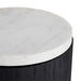 We love the juxtaposition of the mixed materials that form this transitional side table. A solid wood base is finished in black, creating the perfect contrast for its sleek white marble top. A sophisticated addition to both modern and traditional spaces. Also available as a cocktail table (4871). Marble may vary.