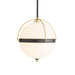 This classic cage pendant is something you may expect to see in a French bistro tucked away from the streets of Paris. An opal glass globe is suspended by sleek antique brass piping that openly encases the top while a contrasting bronze steel band wraps the orb to add depth to its polished surface. Perfect for illuminating a dining table—for larger tablescapes pair with another. Additional pipe available (PIPE-460). Damp-rated although limited covered outdoor conditions may affect finish.