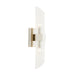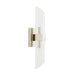 Classic meets contemporary with this sharp-looking sconce. Clear ribbed glass is cut at an angle delivering an unexpected update to its simple form. With the ability to move the glass can be turned facing the wall or away from it-creating a unique orientation of light in the space which it resides. A polished nickel band centers this piece to create more luxe and luster. Can be installed horizontally or vertically. Damp-rated although limited covered outdoor conditions may affect finish.