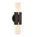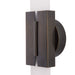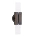Visual elegance is established through the Bauhaus-Constructivist design of the Monroe. An English bronze iron bracket centers a frosted crystal panel like a stylish band of armor. Two LED lights are neatly concealed by the frosted crystal that helps dissipate the brightness and offer a soft glow. Finish will vary. Damp-rated, although limited covered outdoor areas may affect finish.