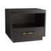 Though side tables were originally made strictly for function this modern maven delivers looks along with utility. Crafted entirely from solid oak its seamless design is due to an ebony black veneer that`s unique and rich with natural textures. Its function comes through in thoughtful details like a wide tabletop roomy nook and bottom drawer that opens and closes smoothly on soft-close slides. Features a signature aged brass pull.