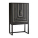 Style and elegance come together in this entertaining cabinet. Built from solid oak it`s finished entirely in a dark sable veneer with shining accents of champagne brass handles and foiled-glass inlay details. Open the doors and discover two adjustable glass shelves and a mirrored backsplash lit from led lights concealed in the design. Inside you`ll also find two pull-out drawers and table extension with matching hardware. The legs are connected by a brace and levelers to keep it steady.