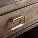 Organic elegance takes the reins with this simple yet stylish storage option. A solid wood frame is fitted with a eucalyptus veneer creating a sense of movement along the grains. The profile of this end table may seem traditional by design though it`s anything but that. A single top drawer is accented with an antique brass drop handle topped with a clear acrylic bar modernizing its rustic aesthetic. An open bottom shelf provides extra storage while delivering the illusion of added space.