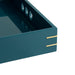 The Gustav Tray is more like a work of art than your typical serving tray. Antique brass corner accents glimmer against a sleek sheen of Aegean blue lacquer. What makes this tray so unique are the finger holes as handles, giving it an edge for stylishly serving guests.