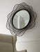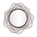Showcasing a daringly organic form, this mirror establishes a strong presence though it is smaller in scale. The abstract form is crafted from natural coco midribs that are first stained in a dark gray finish then intricately woven in a wave-like pattern, and finally molded around an organic shape frame. This process creates an intense visual of undulated depth and dimension. Features a security cleat for hanging. Finish will vary.