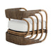 Concentric layers of thick, palm gray rattan poles frame the foundation of the elegantly eccentric and wildly organic chair. The rounded arms seamlessly flow into a tightly wrapped pencil rattan back that sits low for maximum support. A marshmallow texture plush cushion completed the seat for extreme comfort and functionality. Its natural esthetic allows this piece to easily blend with existing décor. Finish will vary.