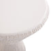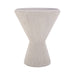 In reverance to Brutalist architecture, the Nika accent table marries form and texture. The sheaf of wheat shape is crafted of concrete in an ivory finish and features a smooth top and a heavily textured base. Etched detailing provides a rich depth textured surround. Finish will vary.