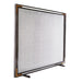 Forged in blackened iron and iron mesh, the Rochelle fire screen imparts the look of a vintage picture frame, with its double-frame construction and antique brass corner detailing.