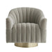 Style reigns supreme in this sensuous swivel chair plucked straight from the seventies. The inviting barrel back, plush channeling and sleek satin brass plinth base create the perfect club chair. Place a pair in your favorite entertaining space with petite drinks tables or use four around a cocktail table instead of the traditional sofa and chair combo. These are meant to be touted, not tucked away!