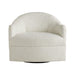 Delve into the depths of comfort with this luxe lounge chair. The deep seat and barrel back are quite inviting while the large-scale size provides a new level of comfort that is hard to resist. Upholstered in Frosted Linen this tub-style chair rests atop a blackened iron swivel base that is neatly concealed from view. Look to place this piece in your favorite entertaining space next to a drink table or pair with another to create an even more cozy environment.