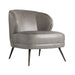 Occasional chairs are known for their sense of casual luxury. The Kitts Chair is no exception built plush and sturdy for whatever your lifestyle brings. The curved back gives you ample support while the sloping arms keep you curled up inside. Upholstered in a plush Mineral Grey Leather with welting details to accentuate the curves. The base rests on tapered light bronze finished metal legs that have a hint of glisten.