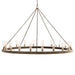 This 20-light chandelier is the largest version in the Geoffrey Collection. Hanging by a purposely rusted chain the large gray wood ring makes an impressive statement when hanging from a beam in a Great Room or hung above a large round dining table. The Edison bulbs in the photo reinforce the rustic industrial feel. Additional chain available CHN-987. Damp rated can be used in covered outdoor areas.