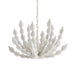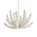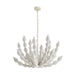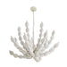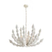 Southwest inspiration meets unconventional design to create this overtly organic chandelier. A white iron foundation is encased by a matching white wood, carved in a cactus-like arrangement. Each arm has been embellished with clusters of coco shell, a detail that further plays up its perennial inspiration. The unique shape slightly conceals six bulbs that brilliantly illuminate a space, while working in tandem with the design to create an even more brilliant shadow play. Though its characteristics favor greenery, it is a perfect addition to coastal settings. Finish will vary. Additional chain available (CHN-241).