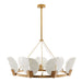 With Art Deco at the heart of its design, this evocative chandelier celebrates glamor and luxury. Our Sierra fixture is created in demilune-shaped slices of white alabaster, clamped together with decorative, brushed brass fittings. The fan-shaped pieces encircle a brushed brass frame. Finish will vary.