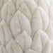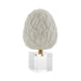 Crafted from textural ivory ricestone, the piece mimics the rich, organic qualities of magnolia tree pods. The sculpture rests on a cut block of clear crystal glass & steel in antique brass, elevating it not only in height but also in style. Ricestone will vary.