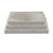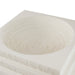 Our stepped centerpiece was designed with the same eye for classical forms as an ancient pyramid or architectural pedestal. This white resin form has a circular dip in the center, enhanced with contrasting matte texture line details. Finish will vary.