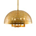 Inspired by the work of Mathieu Mategot who often created pieces in unique metal, this four light pendant will create wonderful reflections from the perforated iron dome in a vintage brass finish.
